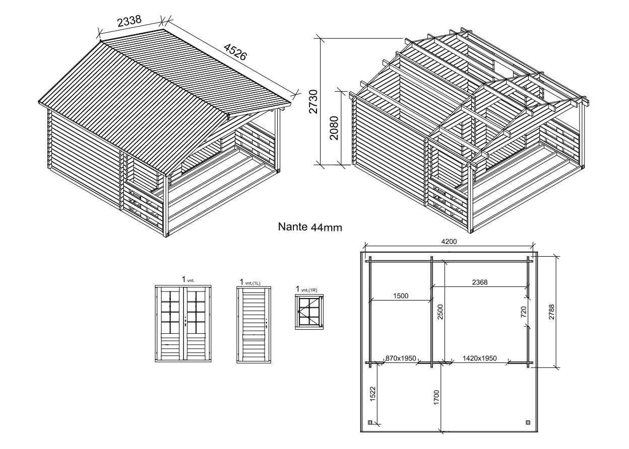 - Vinduer og dører med komplett beslagg sett;