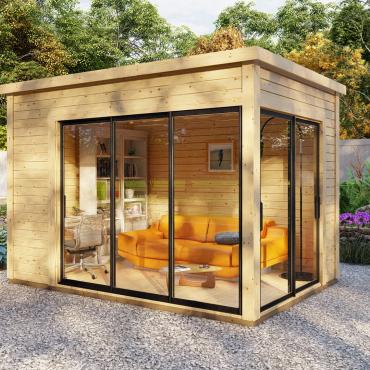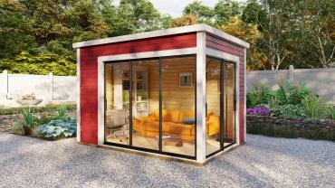 Hagekontor,lysthus, oransjeri - vår nye serie med moderne annekser med det bredeste bruksområdet! Dette luftige rommet med skyvedør lar deg nyte sommerens varme og sjarmerende dufter uten å forlate din favoritt loungestol eller sofa. I kaldt vær kan døren enkelt lukkes og blokkere vind og kulde ute, mens den fantastiske utsikten over hagen og området rundt forblir!