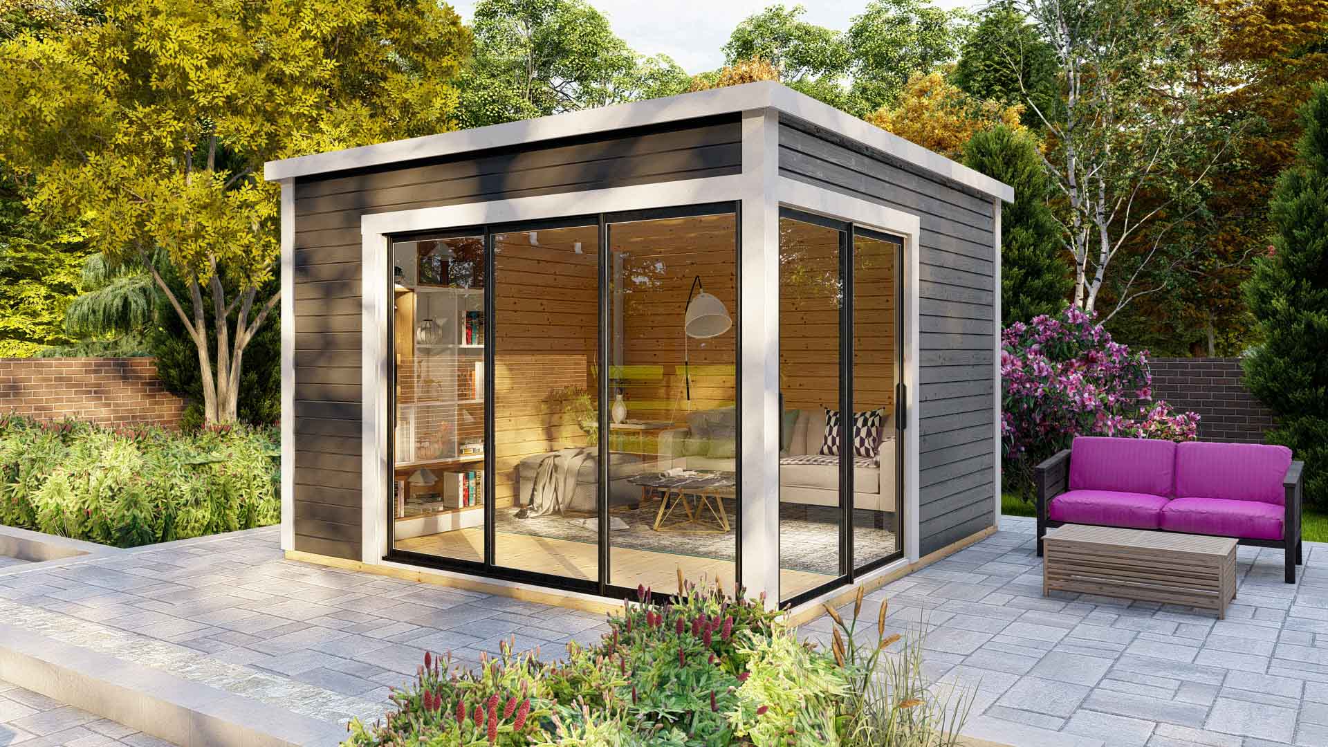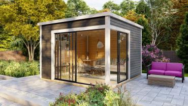 Hagekontor,lysthus, oransjeri - vår nye serie med moderne annekser med det bredeste bruksområdet! Dette luftige rommet med skyvedør lar deg nyte sommerens varme og sjarmerende dufter uten å forlate din favoritt loungestol eller sofa. I kaldt vær kan døren enkelt lukkes og blokkere vind og kulde ute, mens den fantastiske utsikten over hagen og området rundt forblir!