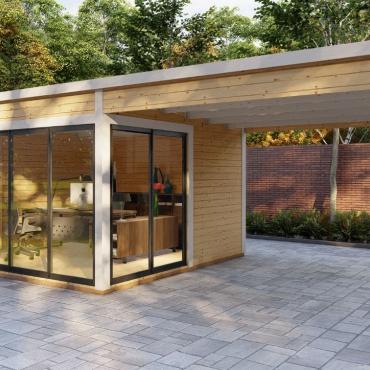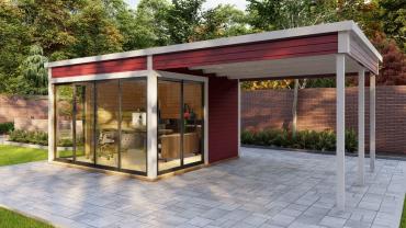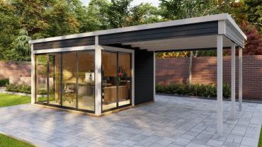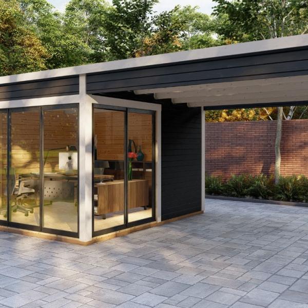 Hagekontor,lysthus, oransjeri - vår nye serie med moderne annekser med det bredeste bruksområdet! Dette luftige rommet med skyvedør lar deg nyte sommerens varme og sjarmerende dufter uten å forlate din favoritt loungestol eller sofa. I kaldt vær kan døren enkelt lukkes og blokkere vind og kulde ute, mens den fantastiske utsikten over hagen og området rundt forblir!
