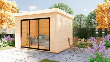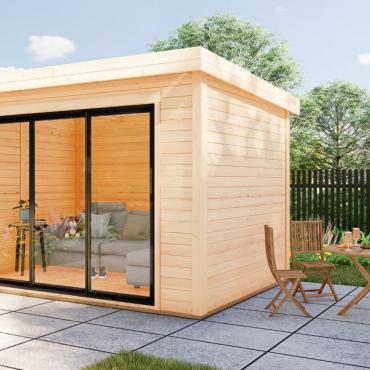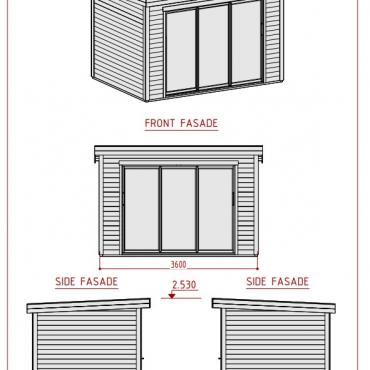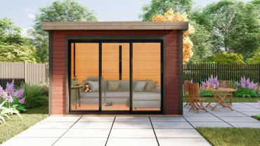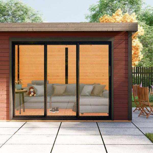 Hagekontor,lysthus, oransjeri - vår nye serie med moderne annekser med det bredeste bruksområdet! Dette luftige rommet med skyvedør lar deg nyte sommerens varme og sjarmerende dufter uten å forlate din favoritt loungestol eller sofa. I kaldt vær kan døren enkelt lukkes og blokkere vind og kulde ute, mens den fantastiske utsikten over hagen og området rundt forblir!