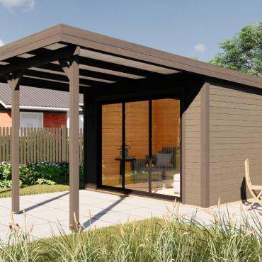 Hagekontor,lysthus, oransjeri - vår nye serie med moderne annekser med det bredeste bruksområdet! Dette luftige rommet med skyvedør lar deg nyte sommerens varme og sjarmerende dufter uten å forlate din favoritt loungestol eller sofa. I kaldt vær kan døren enkelt lukkes og blokkere vind og kulde ute, mens den fantastiske utsikten over hagen og området rundt forblir!