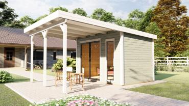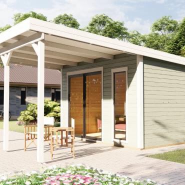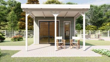 Hagekontor,lysthus, oransjeri - vår nye serie med moderne annekser med det bredeste bruksområdet! Dette luftige rommet med skyvedør lar deg nyte sommerens varme og sjarmerende dufter uten å forlate din favoritt loungestol eller sofa. I kaldt vær kan døren enkelt lukkes og blokkere vind og kulde ute, mens den fantastiske utsikten over hagen og området rundt forblir!