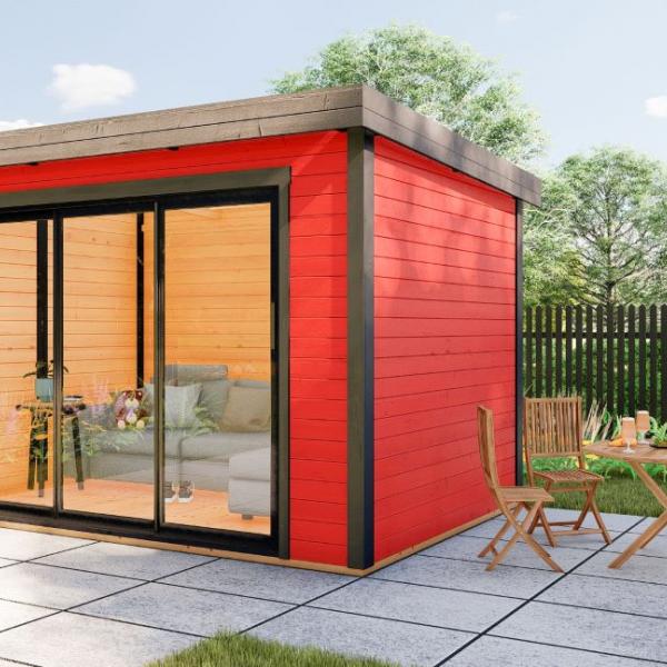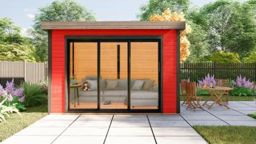 Hagekontor,lysthus, oransjeri - vår nye serie med moderne annekser med det bredeste bruksområdet! Dette luftige rommet med skyvedør lar deg nyte sommerens varme og sjarmerende dufter uten å forlate din favoritt loungestol eller sofa. I kaldt vær kan døren enkelt lukkes og blokkere vind og kulde ute, mens den fantastiske utsikten over hagen og området rundt forblir!