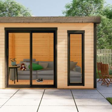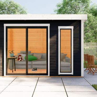 Hagekontor,lysthus, oransjeri - vår nye serie med moderne annekser med det bredeste bruksområdet! Dette luftige rommet med skyvedør lar deg nyte sommerens varme og sjarmerende dufter uten å forlate din favoritt loungestol eller sofa. I kaldt vær kan døren enkelt lukkes og blokkere vind og kulde ute, mens den fantastiske utsikten over hagen og området rundt forblir!