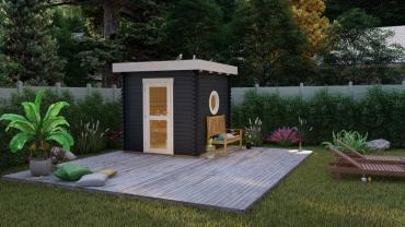 - Limtre saunadør med glass;