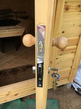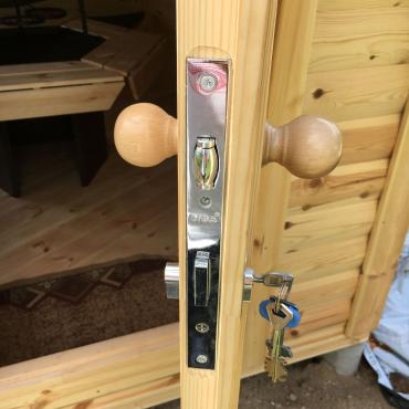 - Vinduer og dører med isolerglass i trerammer, komplett beslagsett;