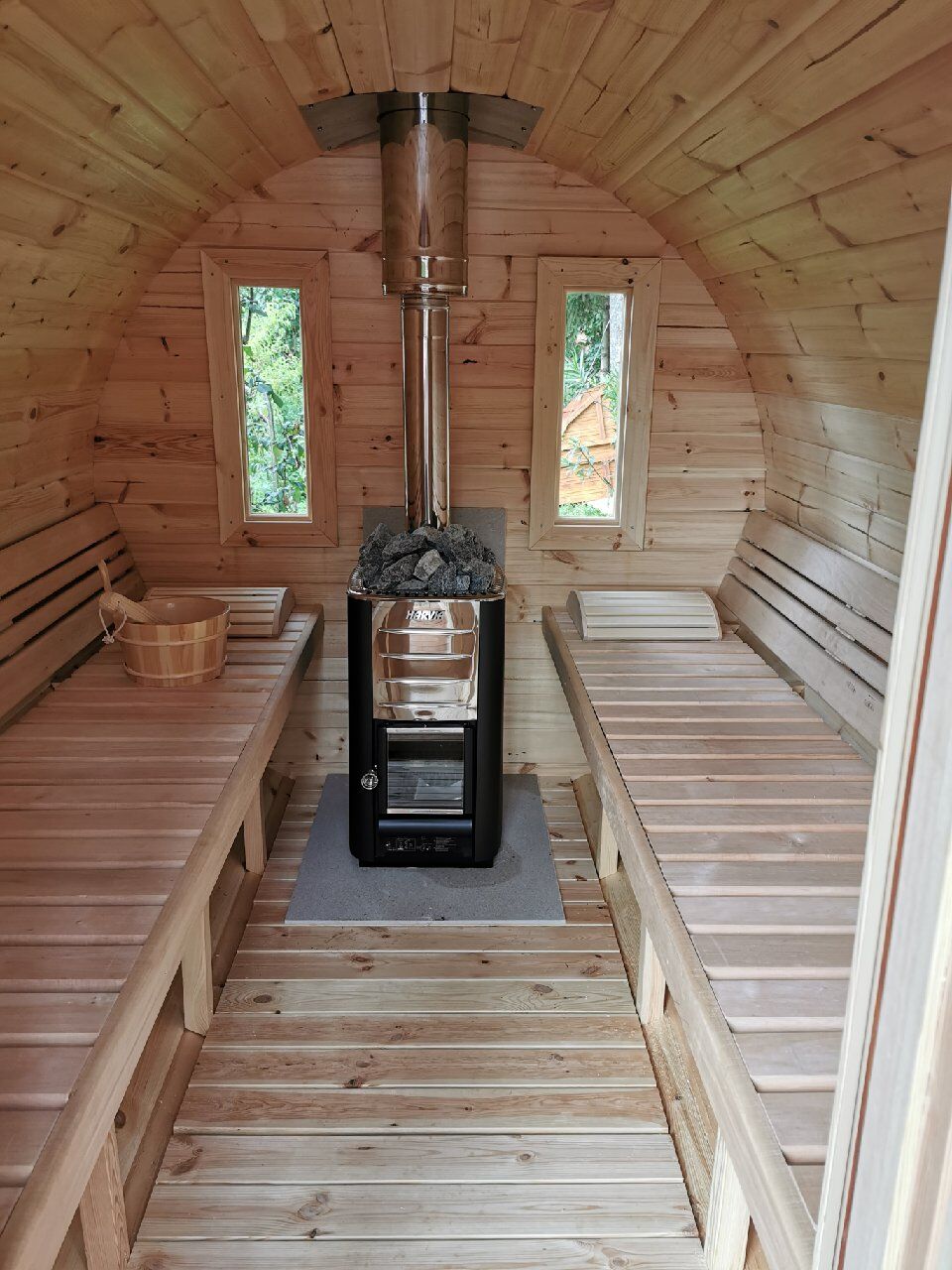 • Harvia Pro 20 vedovn (24,1 kW) vedlast fra innside, med pipe, steiner;