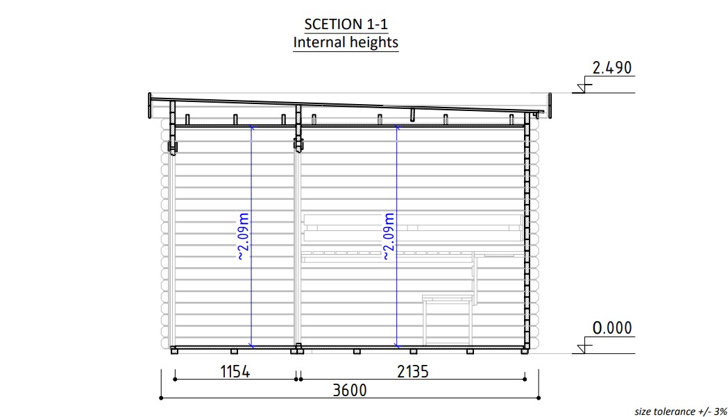 • Saunarom tak med varmeisolasjon (steinull);