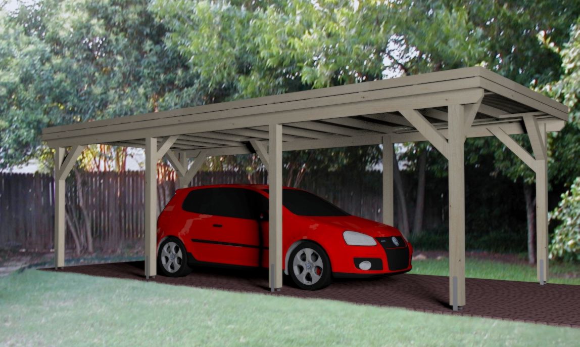 - Carport i limtre konstruksjon (70 % sterkere enn heltre):
