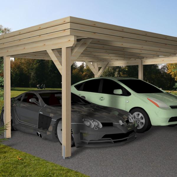 • Carport i limtre konstruksjon (70 % sterkere enn heltre):