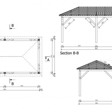 - Stolper 140 mm x 140 mm limtre (4, 6 eller 8 stykker);