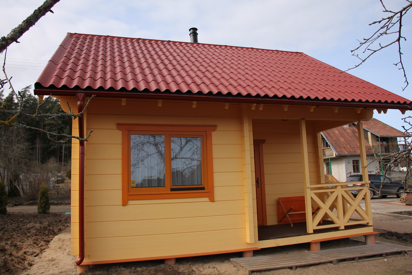 - Som fundament til terrassen (hvis en terrasse er planlagt) kommer høytrikkimpregnert bjelkelag.Terrasebord også høyttrykkimpregnerte;