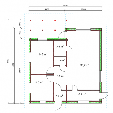 - Vegg og mellommvegg i limtre med laftehjørnet eller city hjørnet.Treramme mellomveg også mulig.