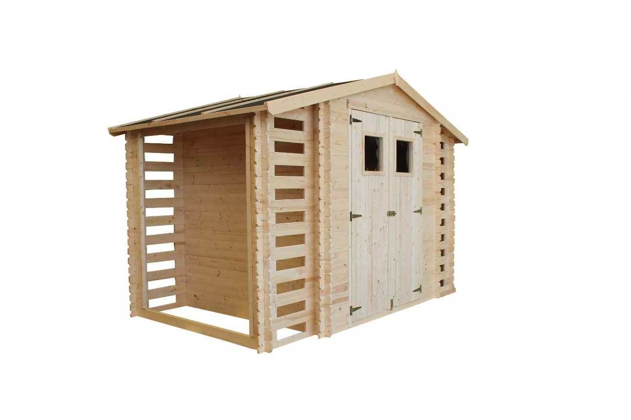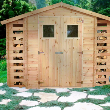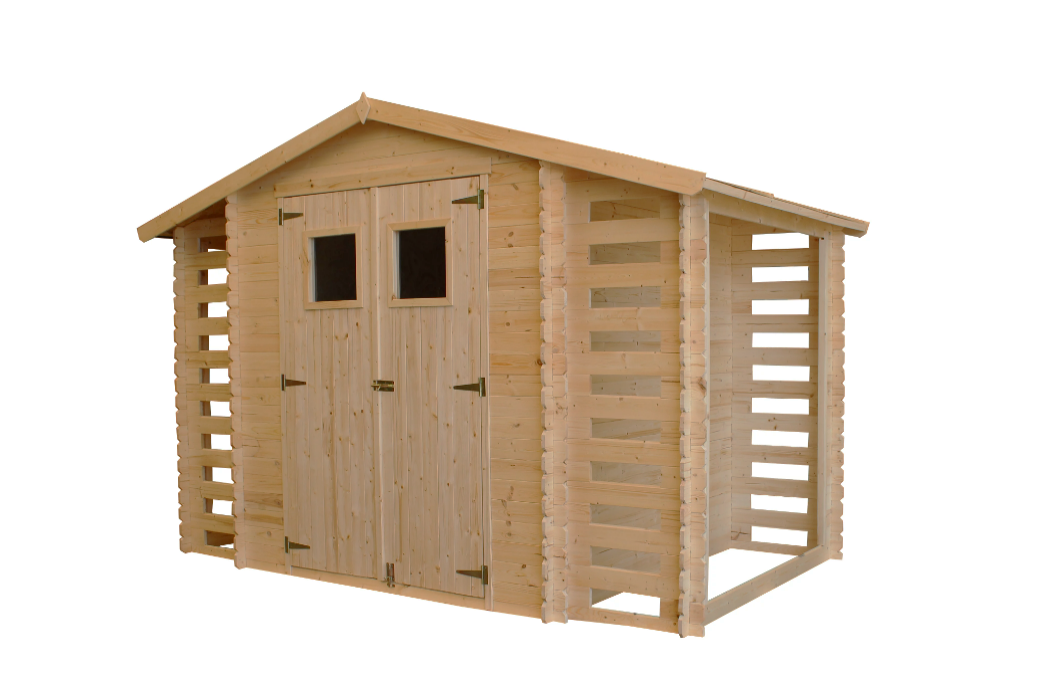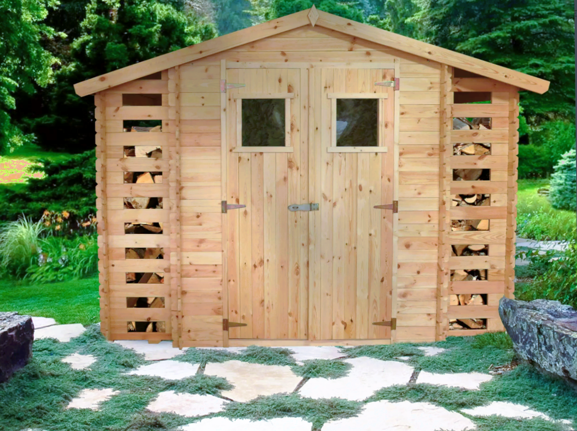 • Låsbar hagebod med vedskjul;;