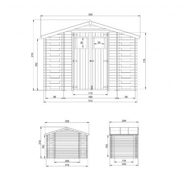 • Mål montert  H218x328x206cm;;
