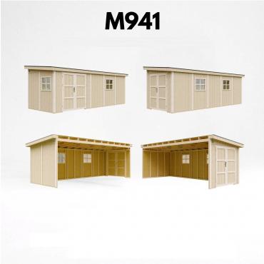 •      Pakken inkluderer bitumen-shingeltak i grå farge, samt metallgesimser langs takets omkrets.