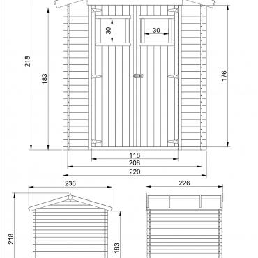- Mål montert H218x226x236cm;