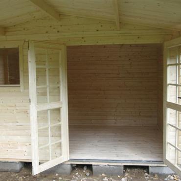 - Glassdør i limtre;
