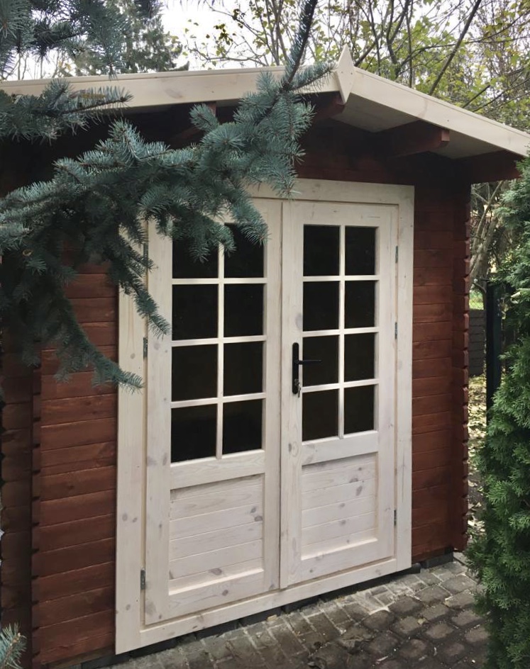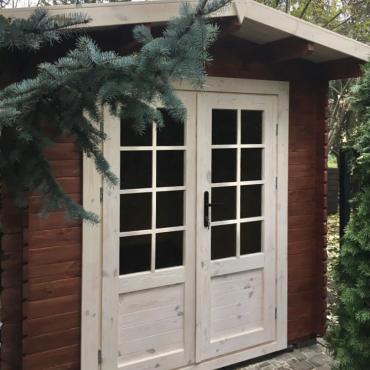 • Glassdør i limtre;