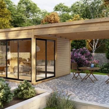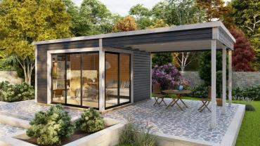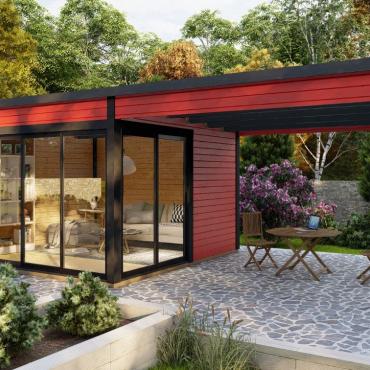 Hagekontor,lysthus, oransjeri - vår nye serie med moderne annekser med det bredeste bruksområdet! Dette luftige rommet med skyvedør lar deg nyte sommerens varme og sjarmerende dufter uten å forlate din favoritt loungestol eller sofa. I kaldt vær kan døren enkelt lukkes og blokkere vind og kulde ute, mens den fantastiske utsikten over hagen og området rundt forblir!