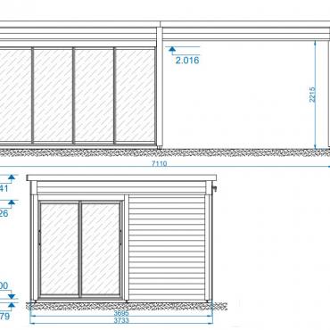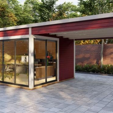 Hagekontor,lysthus, oransjeri - vår nye serie med moderne annekser med det bredeste bruksområdet! Dette luftige rommet med skyvedør lar deg nyte sommerens varme og sjarmerende dufter uten å forlate din favoritt loungestol eller sofa. I kaldt vær kan døren enkelt lukkes og blokkere vind og kulde ute, mens den fantastiske utsikten over hagen og området rundt forblir!