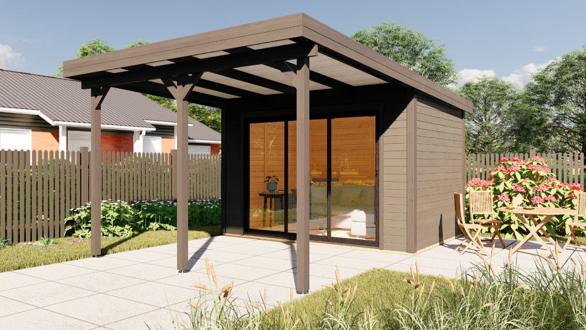 Hagekontor,lysthus, oransjeri - vår nye serie med moderne annekser med det bredeste bruksområdet! Dette luftige rommet med skyvedør lar deg nyte sommerens varme og sjarmerende dufter uten å forlate din favoritt loungestol eller sofa. I kaldt vær kan døren enkelt lukkes og blokkere vind og kulde ute, mens den fantastiske utsikten over hagen og området rundt forblir!