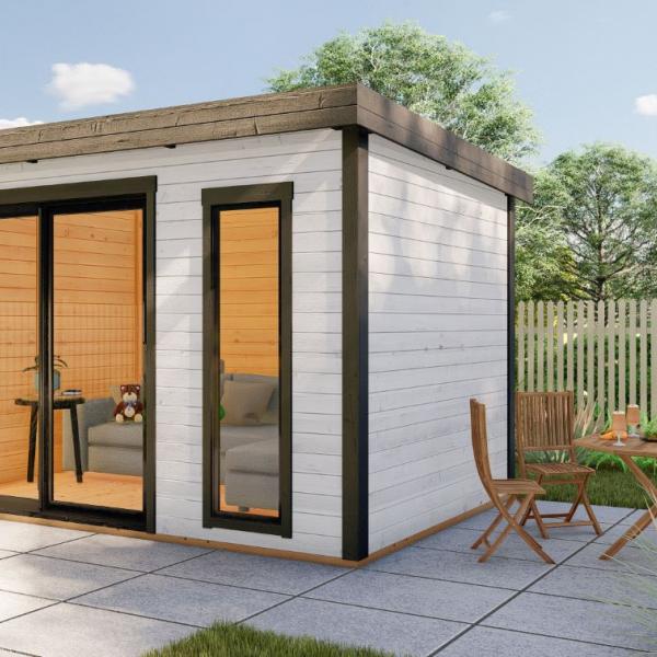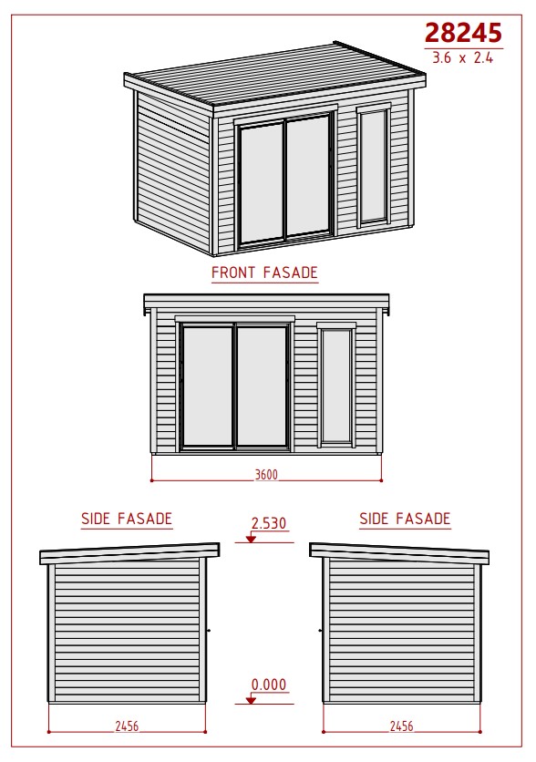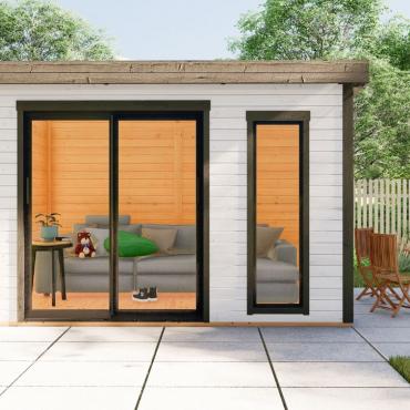 Hagekontor,lysthus, oransjeri - vår nye serie med moderne annekser med det bredeste bruksområdet! Dette luftige rommet med skyvedør lar deg nyte sommerens varme og sjarmerende dufter uten å forlate din favoritt loungestol eller sofa. I kaldt vær kan døren enkelt lukkes og blokkere vind og kulde ute, mens den fantastiske utsikten over hagen og området rundt forblir!