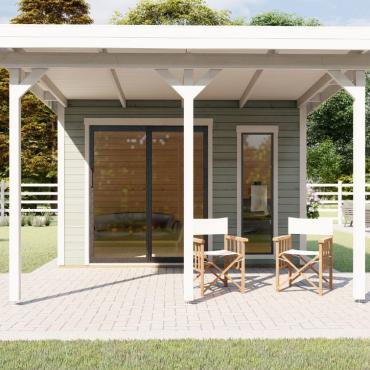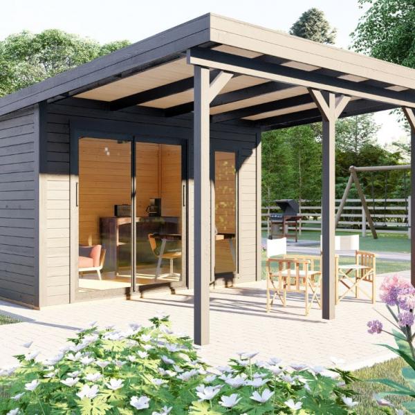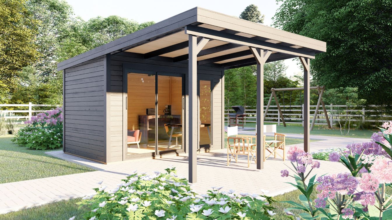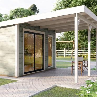 Hagekontor,lysthus, oransjeri - vår nye serie med moderne annekser med det bredeste bruksområdet! Dette luftige rommet med skyvedør lar deg nyte sommerens varme og sjarmerende dufter uten å forlate din favoritt loungestol eller sofa. I kaldt vær kan døren enkelt lukkes og blokkere vind og kulde ute, mens den fantastiske utsikten over hagen og området rundt forblir!