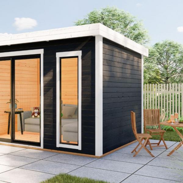 Hagekontor,lysthus, oransjeri - vår nye serie med moderne annekser med det bredeste bruksområdet! Dette luftige rommet med skyvedør lar deg nyte sommerens varme og sjarmerende dufter uten å forlate din favoritt loungestol eller sofa. I kaldt vær kan døren enkelt lukkes og blokkere vind og kulde ute, mens den fantastiske utsikten over hagen og området rundt forblir!
