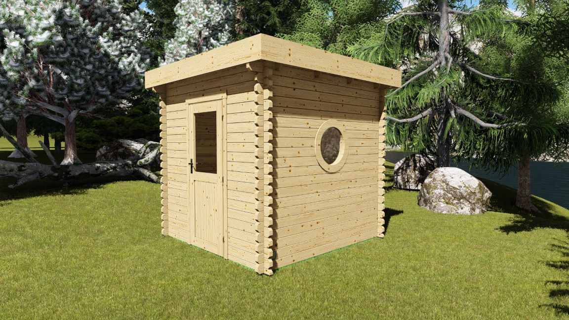 - Limtre saunadør med glass;