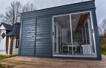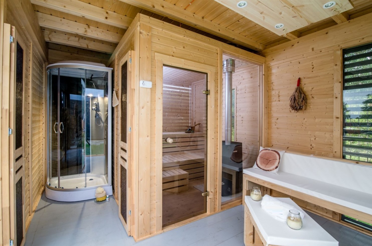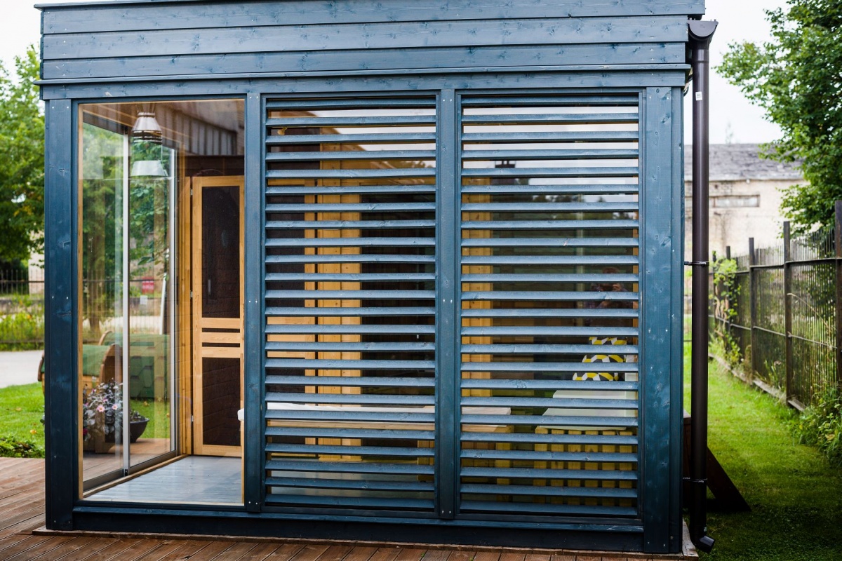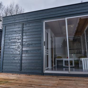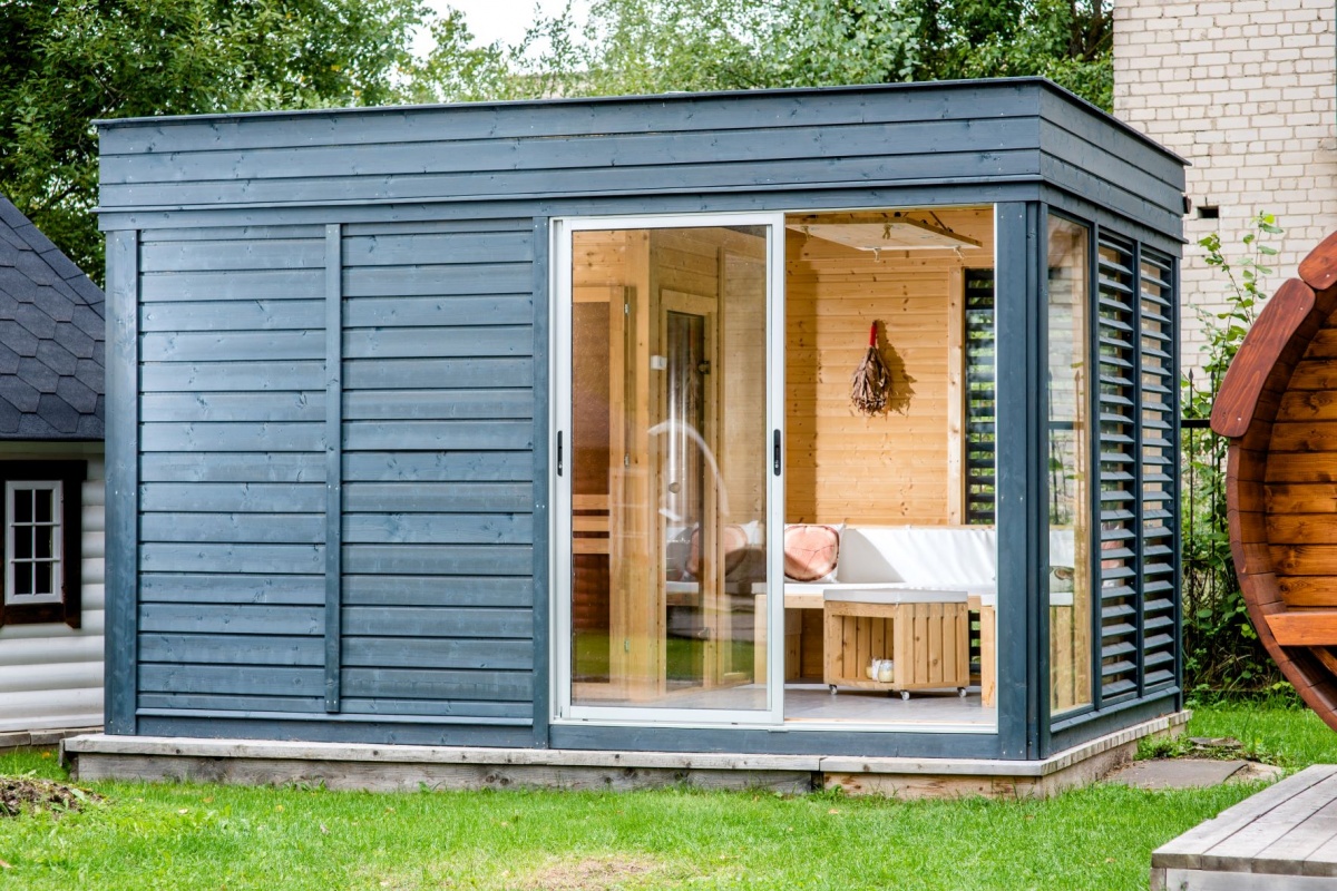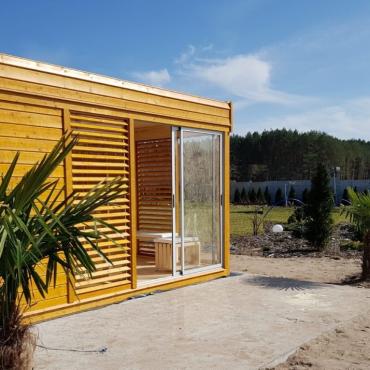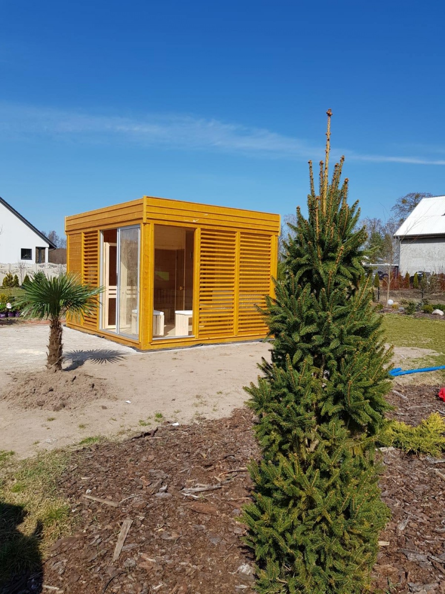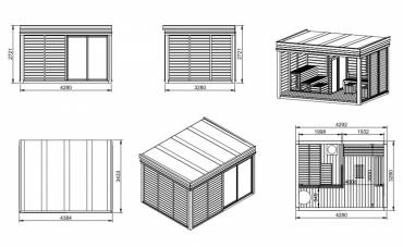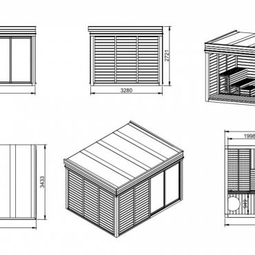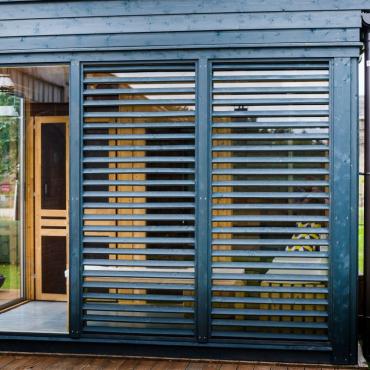 • Badstuepanelene er modulære (glasspaneler,paneler med vinduer, paneler med dører, paneler med trepersienner, skyvedører);