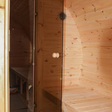 • Omkledningsrom med 2 benker og tonet herdet glassdør til badstue;