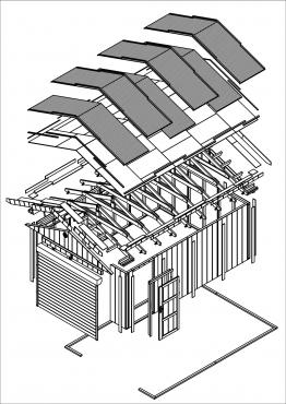 •      Takkonstruksjon 40x120mm taksperrer dekket med 12mm fuktbestandige OSB plater