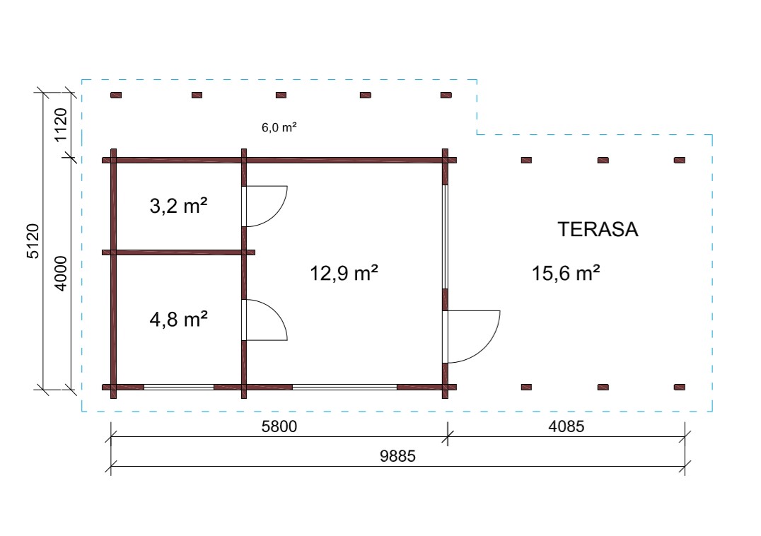 • Som fundament til terrassen (hvis en terrasse er planlagt) kommer høytrikkimpregnert bjelkelag.Terrasebord også høyttrykkimpregnerte;