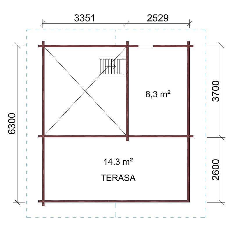 - Høyde på bjelkene 260 mm (laminert i tykkelse og høyde), noe som gir en mer solid struktur.