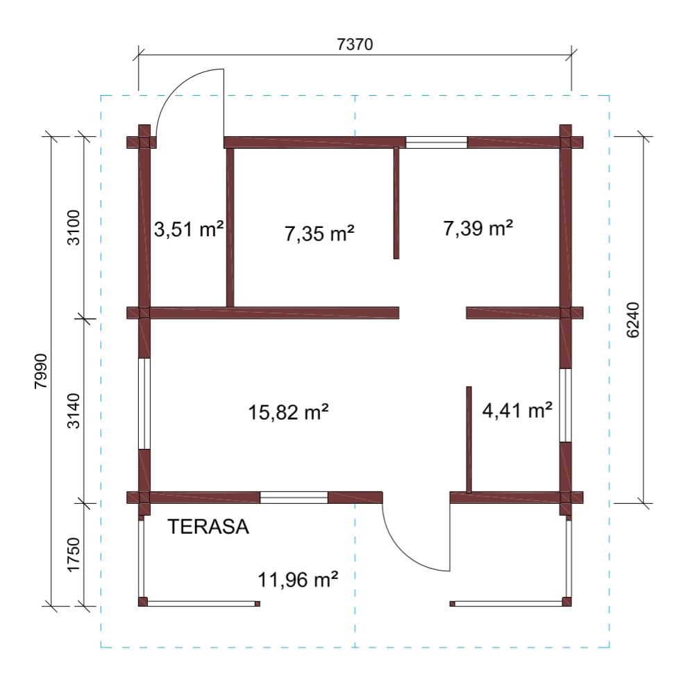 • Vegg og mellommvegg i limtre med laftehjørnet eller city hjørnet.Treramme mellomveg også mulig.