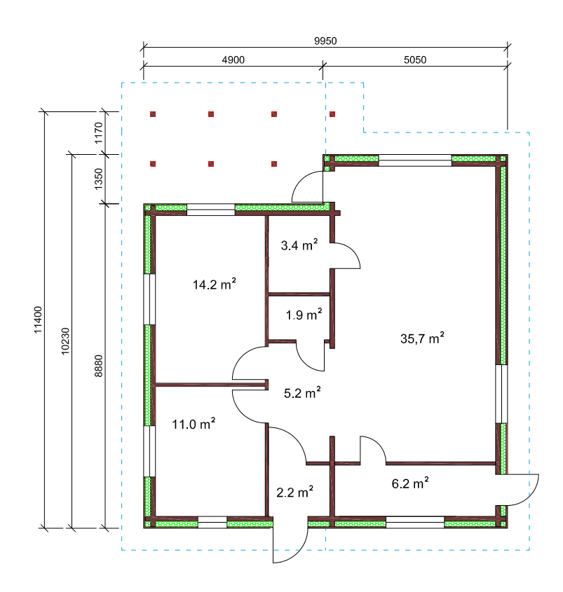 - Vegg isolering mulig på utsiden eller innsiden (treramme fylt med steinull eller ecowool, kledning med planker som imiterer tømmerstokker eller med andre typer materialer).