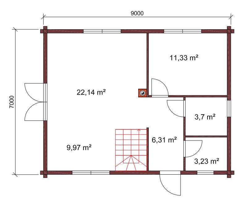• Vegg og mellommvegg i limtre med laftehjørnet eller city hjørnet.Treramme mellomveg også mulig.