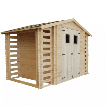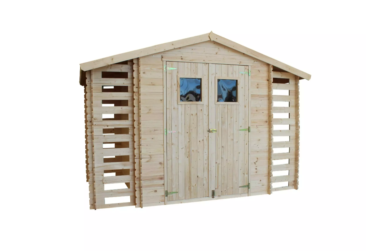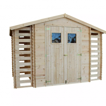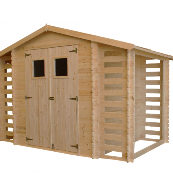 • Låsbar hagebod med vedskjul;;