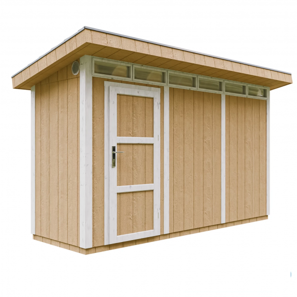 •      Pakken inkluderer bitumen-shingeltak i grå farge, samt metallgesimser langs takets omkrets.
