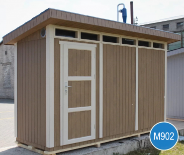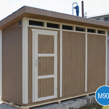 •      Pakken inkluderer bitumen-shingeltak i grå farge, samt metallgesimser langs takets omkrets.