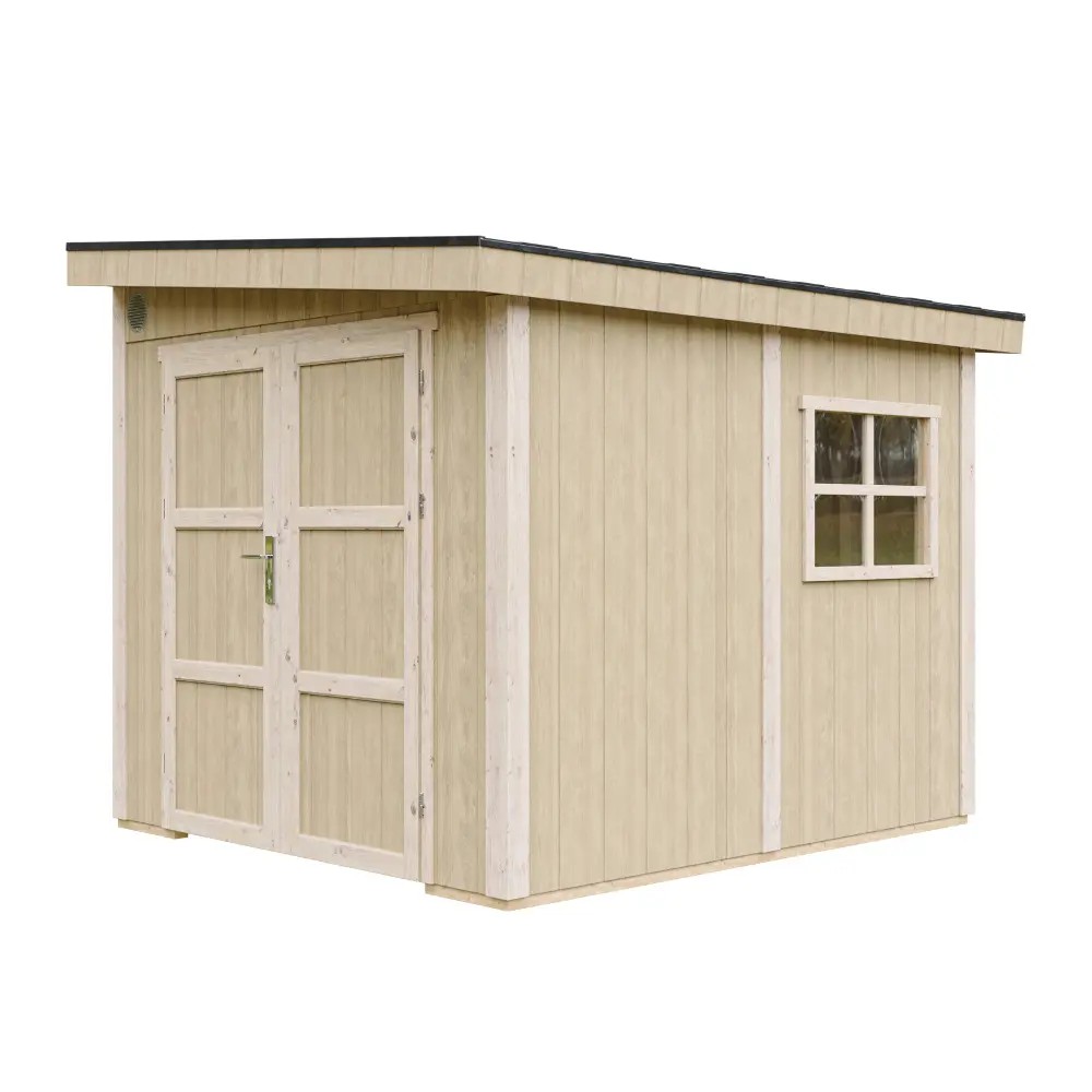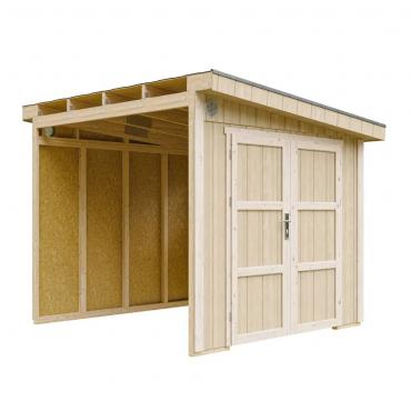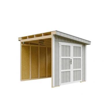 •      Pakken inkluderer bitumen-shingeltak i grå farge, samt metallgesimser langs takets omkrets.