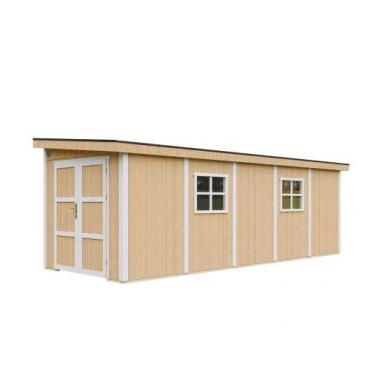 •      Pakken inkluderer bitumen-shingeltak i grå farge, samt metallgesimser langs takets omkrets.